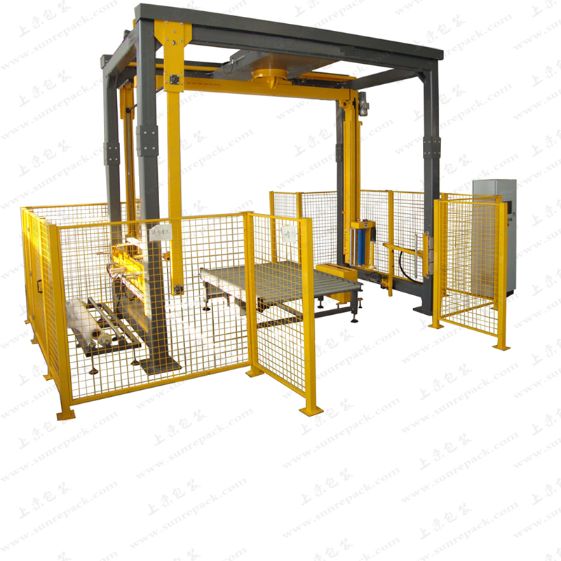 此产品为摇臂在线缠绕机升级版,适用于需要五面(除底部托盘)缠绕机的产品。设备具有高可靠性、高性价比等特点广受欢迎。